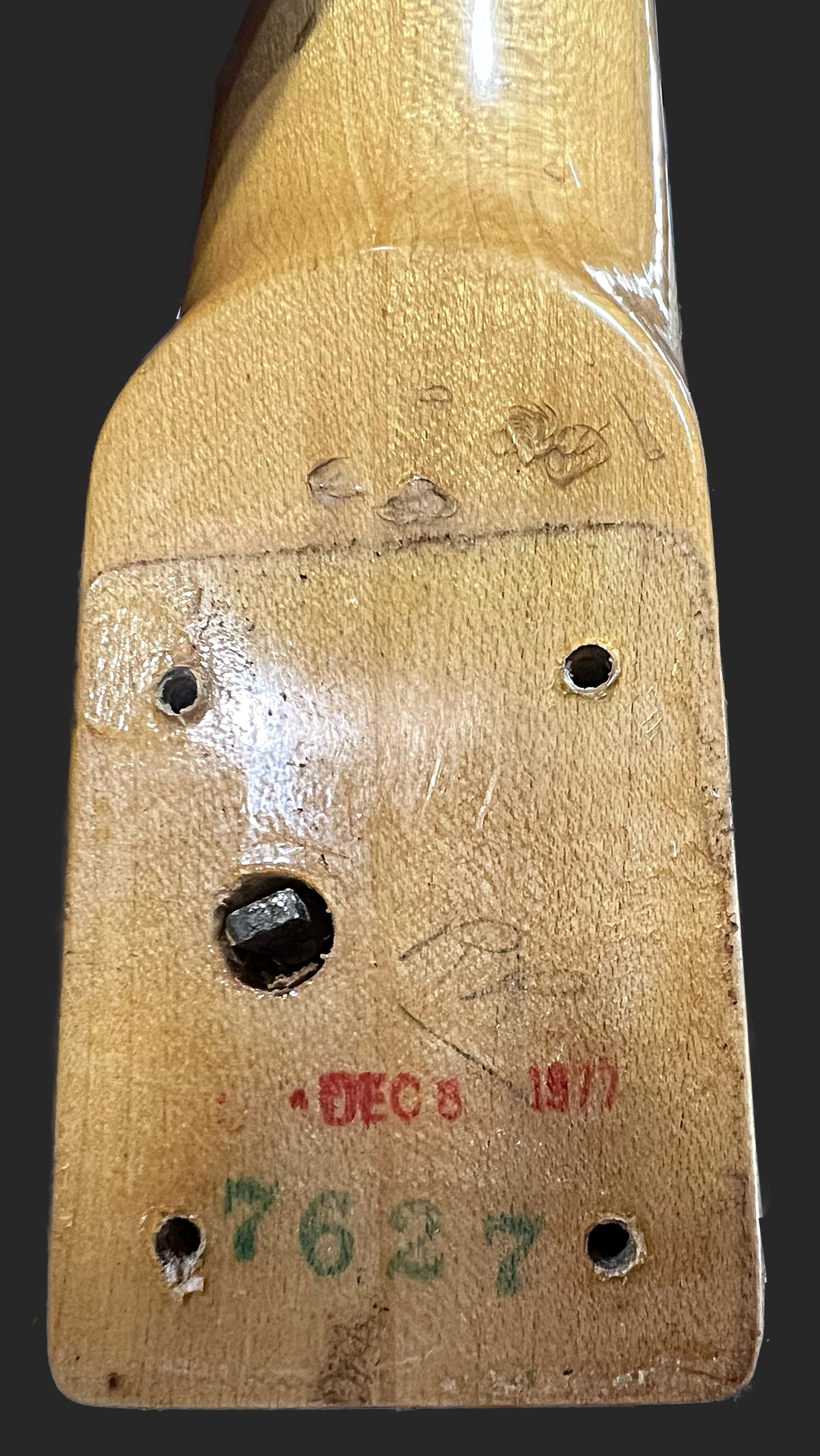 Stamped 8 December 1977, this Gretsch Model 7627 TK-300 Bass is an early production example from Gretsch’s late-’70s Baldwin era — a period marked by bold experimentation and forward-thinking design. With its angular offset body, stripped-back controls, and sleek natural maple finish, the TK-300 was light years away from Gretsch’s classic hollowbodies — and that’s exactly what made it special.