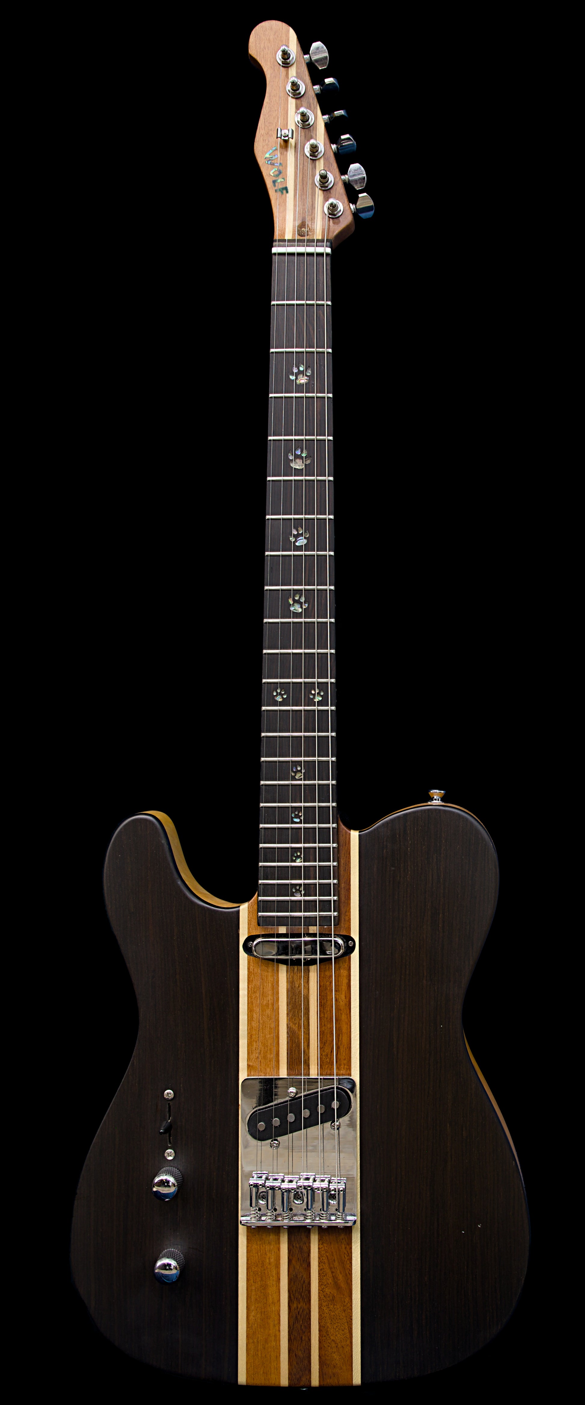Vary by model: mahogany/ash/maple bodies, maple/mahogany necks, rosewood/ebony fretboards, Wolf Custom pickups.